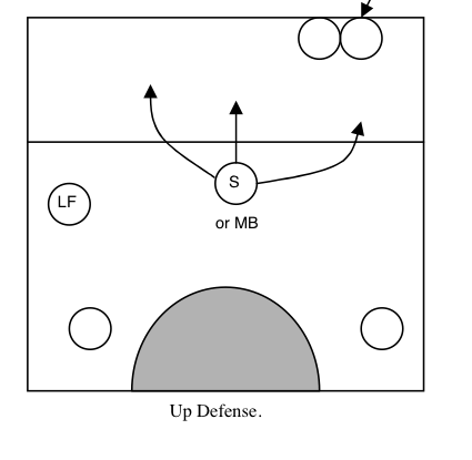 Interesting that I have watched a number of teams run the middle-up defense, including using it for 4-years high school varsity, and have never seen it like that in the diagram above.